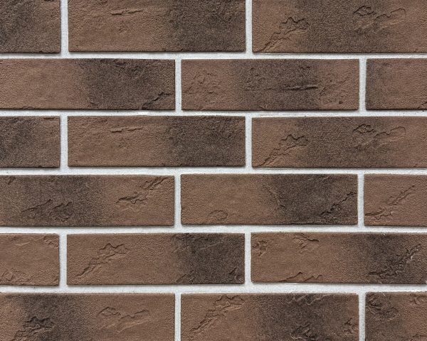 Баварская кладка с выразительным чёрным градиентом. Оттенки цветов №5, №6 и №34 создают эффект премиального клинкера и объёмную фактуру фасада. Фактура кирпича подбирается клиентом индивидуально из нашего каталога.
